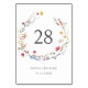 Elegant Watercolor Wild Flowers Wedding Table Number
