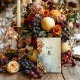 Elegant wedding table card with a pretty brown, blue and gray, watercolor background with grapevines. Personalize to create the perfect table card for your vineyard wedding.