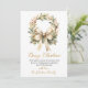 Elegant Watercolor Wreath Gold Bow Merry Christmas Holiday Card