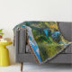 A quality printed throw has its advantages. This is a much finer weave throw than its loopier cousins, and though lighter, it is worth the investment for custom room accessorizing. The back is much prettier than the typical brown, and the fringe on the long sides very vivid, the selvage nicely done. Before photographing, I washed the throw in cold water, delicate, with a thicker woven throw the same size. On tumble dry low, this throw was dry in half the time as the other. This is a very practical quality if you use throws for furniture covers or to wrap up in frequently. The sleekness of the fabric makes it a great layer for accenting or protecting without the feeling of sitting on too much stuff. Perfect for napping or when you feel a light chill coming on. The color printing is beautiful and on this fabric, matched the design and color of my Photoshop image. This is an advantage for blending room fabrics and colors. The fringe on the short sides prints the colors from the design image and therefore varies from the side fringe. I streaked a white fractal line through the plaid pattern to give the illusion of weaving. This printed as crisp as an illusory thread, and put some white in the short side fringe, showing another advantage of print vs loomed- for artistic purposes, line lines, detail, and color integrity can be planned and preserved. My loomed throws have color limitations and more of a needlepoint texture. Print throws reproduce an exact image. The throw felt a little stiff straight out of the package, but this went away in the first delicate wash. Of course I searched the wash water for ink or bleeding and there was none.