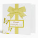 Avery three ring Binder with pretty graphics of yellow and white butterflies in the bottom left. A big yellow ribbon and bow stretches from top to bottom, on the front cover against a white background, and the spine and back are done in a pretty yellow and white stripe design. Great as a wedding scrapbook, guest sign in book, organizer, or wedding photo album. Add your name or your own text to personalize just for you or as a gift. Get the type of inserts you need from local discount and office supply stores.