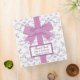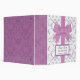 Avery three ring Binder with pretty graphics of a lavender damask design on a white background. A big pinkish lavender ribbon and bow stretches from top to bottom, on the front cover against a white background, and the spine and back are done, in lavender on lavender damask design. Great as a wedding scrapbook, guest sign in book, organizer, or wedding photo album. Add your name or your own text to personalize just for you or as a gift. Get the type of inserts you need from local discount and office supply stores.
