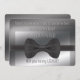 Sleek and sophisticated, one might toss around the word dashing, this charcoal gray, lighter gray gradient and black tuxedo bow tie, is designed specifically to request some important guy to be an usherr at your wedding. Personalize on front with name and you can use our tongue in cheek message on back, or write your own.