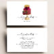 This elegant bakery or cake decorating business card features a burgundy and gold wedding cake illustration. Customize it with your business name in black handwriting script with swashes at the beginning and end, and your contact information in black sans serif font. (To keep the swashes, replace only the letters in those text fields, leaving the symbols in place.)