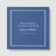Make your wedding unforgettable with this timeless classic blue and white guest book, designed to capture precious memories. Featuring a modern minimalist aesthetic, this keepsake showcases a double-frame border in crisp white on a sophisticated classic navy blue background. Personalize it with your names, wedding date, and details in elegant white lettering and script for a truly unique touch. The matching blue spine adds an extra layer of charm, featuring white text with the couple’s names and wedding date. The back cover completes the design with a solid blue background, creating a cohesive and elegant look. Perfect for adding a touch of refinement to your wedding day, this guest book is as functional as it is stylish.