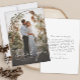 Our Elegant Wedding Photo Custom Message Thank You Card is the perfect way to show your gratitude. Featuring a front template for your cherished wedding photo, the card displays a heartfelt "Thank You" in beautiful handwritten modern calligraphy, coupled with the couple's first names and wedding date in a stylish classic serif font, all in crisp white over your photo. The back includes a template for your personalized message, along with the couple's names in calligraphy script. For questions or custom color requests, please contact the designer using the "MESSAGE" button below the listing or e-mail invitationsuites@gmail.com.