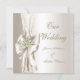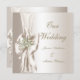 Elegant Wedding Damask Pearl Cream White Bow Invitation