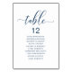 Wedding Dinner Guest Seating Table Chart Card, Modern Elegant Navy Blue Script.