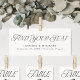 Chic wedding seating chart header featuring the phrase "Find Your Seat" is displayed in black, modern typography with a white background. Personalize the black and white seating chart header card with your names, wedding date, and wedding location.