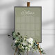 This design features an elegant wedding seating chart green, with "find your seat" template minimalist, with a botanical calligraphy script table plan, a modern elegant simple palm leaves, spring summer fall winter, find your seat signs, chic watercolor greenery foliage, destination beach island resort weddings, wedding guest seating chart sign, custom wedding welcome sign