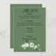 Elegant wedding flat menu, perfect for your special day! Green and floral design.