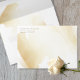 Elegant white and golden yellow watercolor brush strokes wedding envelope. Ability to add your name(s) and address on front top corner or to erase from text boxes to remove. The phrase "the Wedding Of" in graceful modern hand written calligraphy with couple's names on top back flap. Outside and inside in white with yellow, gold metallic hues brush strokes. Note: typography is not in real foil, but rather print in a golden hue. Part of our "Elegant Calligraphy Minimalist Wedding" collection with a variety of coordinating products available.