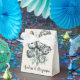 A meticulously illustrated bouquet of flowers. The flowers are predominantly in shades of green and gray, with intricate details highlighting their petals and stamens. There's a distinct red bud on one of the stems, contrasting beautifully with the cool tones of the rest. The leaves and stems are depicted with varying shades of green, giving depth and dimension to the composition. The entire arrangement is set against a white background, allowing the colors of the flowers to pop and the details to be clearly visible.