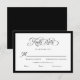 This design features a clean white front with black calligraphy and type, customizable fields for meal selections and return-by date, and a fully editable layout—including fonts, colors, and spacing. Perfect for monochrome, minimalist, and formal weddings.