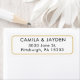 Add a personal touch to your wedding invitation suite with this simple Address label with a gold border and simple font. Choose from a variety of font and color options to create a unique and personalized return address label that perfectly reflects your style and personality. The customized design is perfect for making lasting first impression.