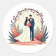 Includes 20 small stickers on one sheet. Celebrate the joy of weddings with this beautifully illustrated sticker featuring a bride and groom under a floral arch.