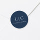 Elegant Wedding Monogram Navy Blue Classic Round Sticker