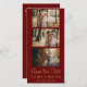 Capture your love story with our save the date photo strip, featuring your favorite photos in a minimalist template. The elegant dark red and gold color scheme adds a touch of luxury and sophistication to your announcement.
