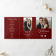 Crafted with precision and elegance, this tri-fold wedding program exudes timeless charm with its striking red and white color palette. The inclusion of your personalized wedding monogram adds a touch of intimacy and sets the stage for a truly memorable ceremony.