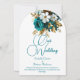 Elegant Wedding Ornate Teal White Gold Flowers Invitation