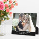 Wedding keepsake black photo plaque to celebrate your special day featuring your favorite photo. Personalize with your names and wedding date in elegant white typography.