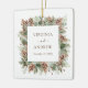 Elegant Wedding Photo Ceramic Ornament. Celebrate your special day with our Wedding Ornament, part of the "Elegant Winter Pinecone Greenery Wedding Suite." This keepsake features a beautifully designed front with hand-painted watercolor greenery and pinecones, capturing the serene beauty of the season. The back of the ornament can be personalized with your wedding photo, creating a cherished memento that your guests will treasure. Each piece is meticulously crafted to enhance the cohesive and captivating aesthetic of your wedding, leaving a lasting impression of your beautifully curated event. Let your day unfold with effortless elegance, and give your guests a memorable keepsake to remember your special day.