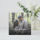 Modern Wedding Photo Hand-Lettered Thank You Note Card. A great and thoughtful way to thank your friends, family, and coworkers who showed up to celebrate your wedding day. Featuring a modern photo thank you card with script hand lettered "thank you" and a love heart.