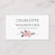 Elegant pink roses floral on white wedding planner business card. Elegant open type engraved style font. Modern and inspirational.