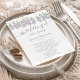 This design features a wedding program, with an elegant, minimalist, simple, calligraphy script, typography design, with lilac and lavender floral