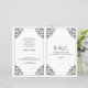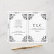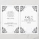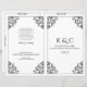 Nadine Wedding Program Foldover (Black): Let your guests follow along with your wedding order of service with this unique vintage corners wedding program template in gold. These will come unfolded (with no crease). The design color is set in a rich black, but you can change the color of the design by changing your background color. **HOW TO CHANGE YOUR DESIGN COLOR** 1) Click the "Personalize" Button. 2) Click the "ClICK TO CUSTOMIZE FURTHER" link at the bottom. Then you will have the option to change your "BACKGROUND COLOR" to your wedding color. Don't forget to change your text color to match your design.