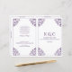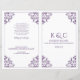 Nadine Wedding Program Foldover (Plum): Let your guests follow along with your wedding order of service with this unique vintage corners wedding program template in plum / purple. These will come unfolded (with no crease). The design color is set in plum, but you can change the color of the design by changing your background color. **HOW TO CHANGE YOUR DESIGN COLOR** 1) Click the "Personalize" Button. 2) Click the "ClICK TO CUSTOMIZE FURTHER" link at the bottom. Then you will have the option to change your "BACKGROUND COLOR" to your wedding color. Don't forget to change your text color to match your design.