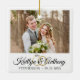 Create an elegant commemorative white wedding keepsake ornament featuring one or two photos, an elegant calligraphy script font for the couple's names accented with wedding rings and their wedding date. Makes a meaningful wedding or holiday gift for the newlyweds or create one to commemorate your First Christmas as Mr. and Mrs. For modifications or assistance, contact the designer BEFORE ORDERING via Zazzle Chat or makeitaboutyoustore@gmail.com.