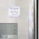 It was a bit smaller than expected, but I was too excited to check dimensions. The product itself send well printed though the grey text is a bit paint. Magnet worked perfectly on my fridge.