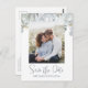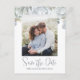 Announce your wedding in style with this elegant wedding save-the-date card featuring a personalized photo template and delicate blue floral accents. Designed in timeless blue and white, this simple and classic layout includes graceful calligraphy script paired with clean typography for a refined look. Perfect as a budget postcard option, it's an affordable and beautiful way to share your exciting news with family and friends.
