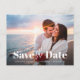 An elegant photo wedding save the date card design with editable text and white script lettering. Feel free to personalize the image and text.