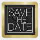 Black square with faux gold border and SAVE THE DATE in a thin and elegant font-style