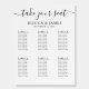 Introducing our customizable elegant wedding seating chart, a timeless and sophisticated addition to your special day. This exquisite product is designed to help you and your guests find their seats with ease, ensuring a seamless and organized reception. Crafted with meticulous attention to detail, this seating chart features a refined and elegant layout that complements any wedding theme. With the capacity to accommodate 6 tables, it provides a clear and concise overview of the seating arrangements, making it effortless for guests to locate their assigned tables.