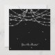 Plain white envelopes are included with paper invitations and will come to fit the invitation size you select. If you don’t need the envelopes, you may choose to not receive them by selecting the dropdown below "Envelopes" and choosing "None." If you’d like to have a design on your envelopes, you can browse all of these available envelopes to find the design that complements your Elegant Wedding Sparkling String Black Invitation.