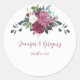 Elegant Wedding Stickers with Cranberry Flowers and White Roses on a white background. The text includes: the bride and groom's names and wedding date. To personalize, simply insert the names and date into our easy template, replacing the sample test. Be sure to view the entire Wedding Collection for matching stationery and accessories.