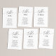 Perfect for any wedding reception or rehearsal dinner, our elegant minimalist table number seating chart cards combine style and practicality. These clean, modern cards help guests find their seats easily, with customizable options to add both table numbers and guest names. Simply click the "Personalize" button, edit the table number and guests, add that table number to the cart and then repeat for as many numbers as you require.