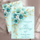 Elegant Wedding Teal Blue White Gold Flowers Invitation