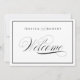 Classic understated black and white wedding sign with a modern touch featuring the elegant script of the word "Welcome" and a black border. Frame for your wedding venue, ceremony and reception tables to guide guests.