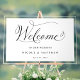 Make a statement and welcome your guests to your wedding with this elegant white acrylic sign! Ability to use this sign for any event. Design with an elegant and sleek frame in white color and beautiful modern handwritten calligraphy details in black. 12" x 18" is our default size, you can choose from several size options. "IMPORTANT NOTE: Small sizes come with a wood block to stand, bigger sizes need an easel or surface to stand so they won't warp. Dimensions of sign from demo photo with stand: 24" x 36"