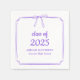 Celebrate in style with these elegant graduation napkins featuring a hand-drawn bow, classic script font, and custom text for name and school. Perfect for a 2025 grad party with a purple theme or refined minimalist aesthetic. A chic way to personalize your graduation celebration.