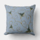 Elegant Whimsical Gold Floral Pattern Light Blue Throw Pillow