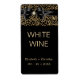 This wedding wine label features a golden swirl pattern and a satin ribbon and bow with a diamond and pearl brooch graphic. Easily customized. Works well with the small favor size 750 ml slim wine bottles.