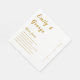 This elegant white-and-gold wedding napkin is perfect for a modern wedding. Its simple design features elegant gold calligraphy of the bride and groom's names, the date of the wedding, and fun facts on a clean white background.