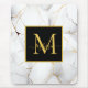 Elegant White and Gold Marbled Monogram Mouse Pad