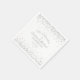 Elegant white with silver glitter wedding reception paper napkins, personalized with the couple's names and wedding date.