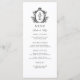 Black and White Monogram Crest, wedding menu. Vintage inspired Regency-Era baroque art monogram crest. Features, an elegant clean black and white typography design.